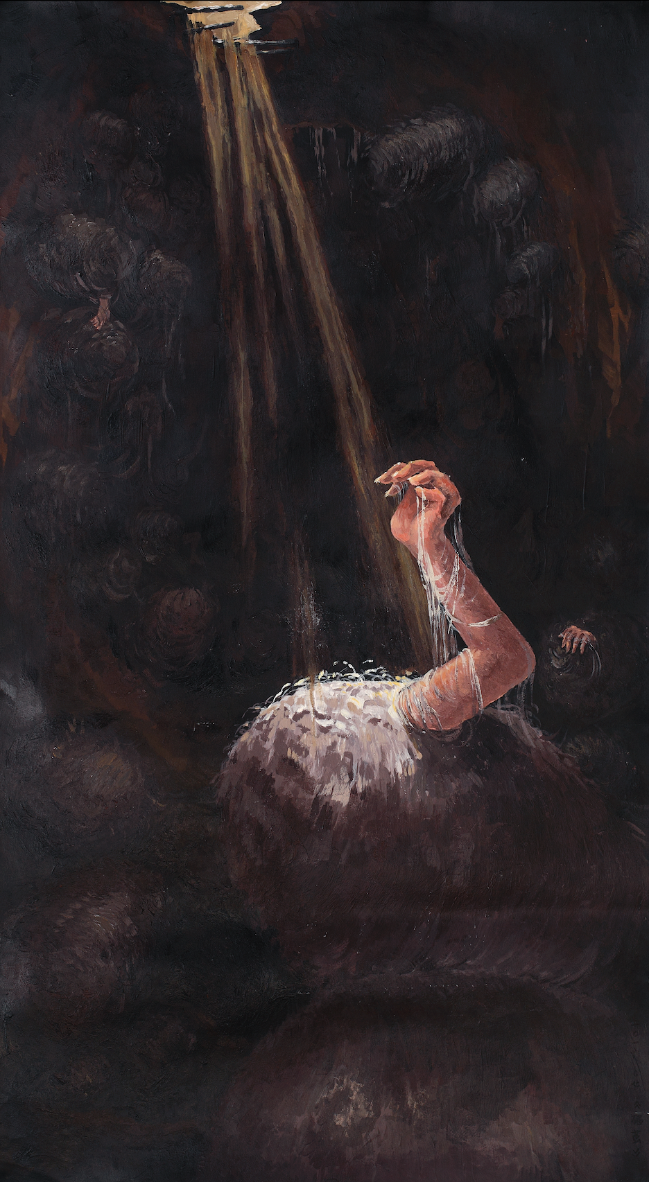 When Wanderer first enters, she is in a very small space with no sound. The legs, feet, and arms cannot be straightened, and the surrounding environment can be described as "like being inside an egg." After trying to escape from the restraints, she discovered that there were many similar structures around him: they were not eggs, but cocoons. The number of cocoons is too large to be estimated. They are all placed in a deep pit. When Wanderer looks up, she can see the circular sky. It was nighttime and stars can be seen.